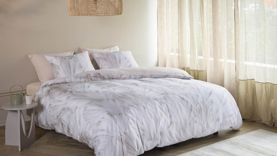 La housse de couette Jihan de Beddinghouse dégage un cachet intemporel dans la chambre. Ornée de feuilles palmées aux teintes douces et naturelles, elle offre un écrin paisible et harmonieux sans fausse note. Couette rabattue, le dos uni de couleur claire ajoute une touche de modernité à cette parure de lit réversible (taies d’oreiller comprises).