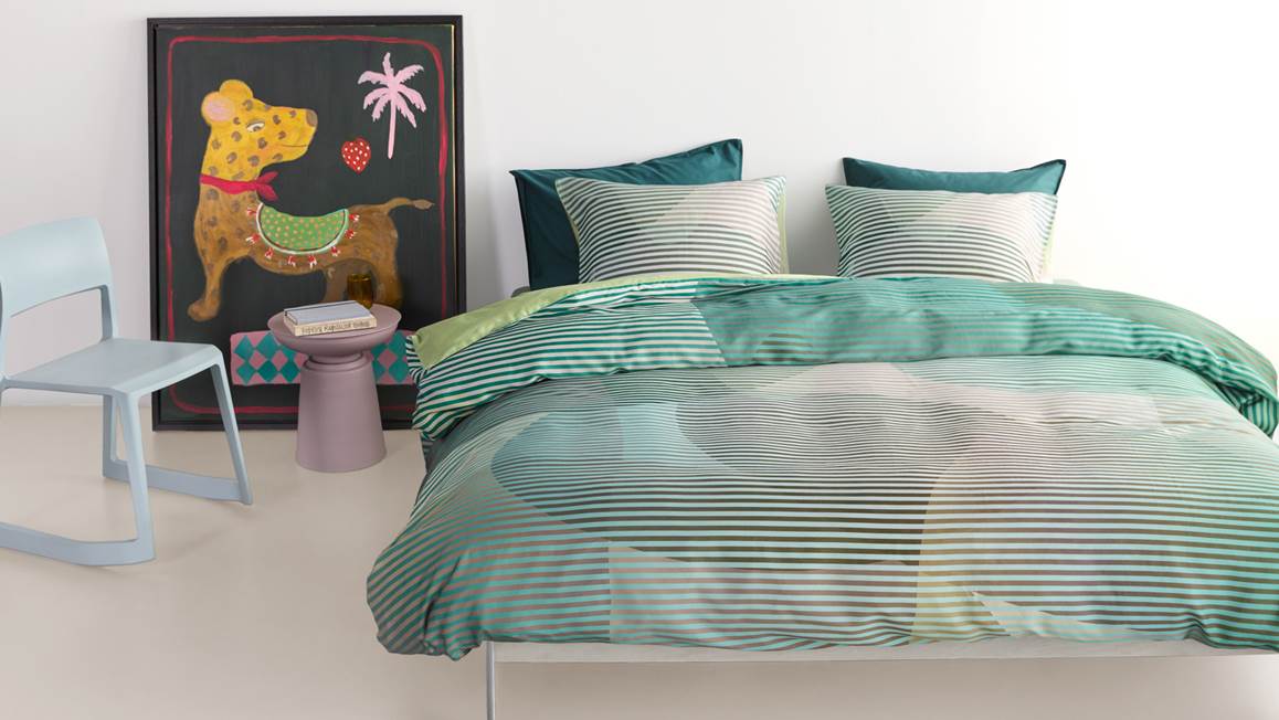 La housse de couette Lombard Street de Beddinghouse allie dynamisme et sophistication. Son motif géométrique en camaïeu de verts est composé de lignes arrondies qui lui confèrent un certain côté organique. Pour accentuer le design minimaliste, la parure de lit (taies d’oreiller comprises) est finie d’un dos uni de couleur vert tilleul.