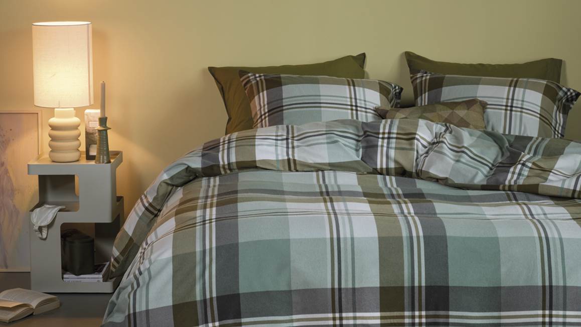 La housse de couette en flanelle Vernon de Beddinghouse donne un côté intimiste et cosy à la chambre. D’une élégance indémodable, son motif à carreaux d’inspiration tartan réchauffe la pièce, en associant différentes tonalités de vert et gris. La housse de couette comporte les taies d’oreiller assorties (format rectangulaire de 60x70 cm).