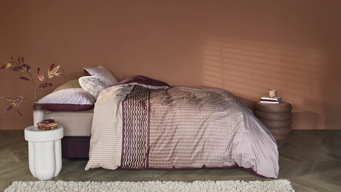 Ajoutez une touche de luxe à la déco de votre chambre avec la housse de couette Yuval de Beddinghouse ! Sa face devant en velours est ornée d’un motif géométrique moderne en camaïeu de teintes terreuses. Pour accentuer son esprit chic & cosy, la housse de couette et ses taies d’oreiller ont un dos uni de couleur marron.
