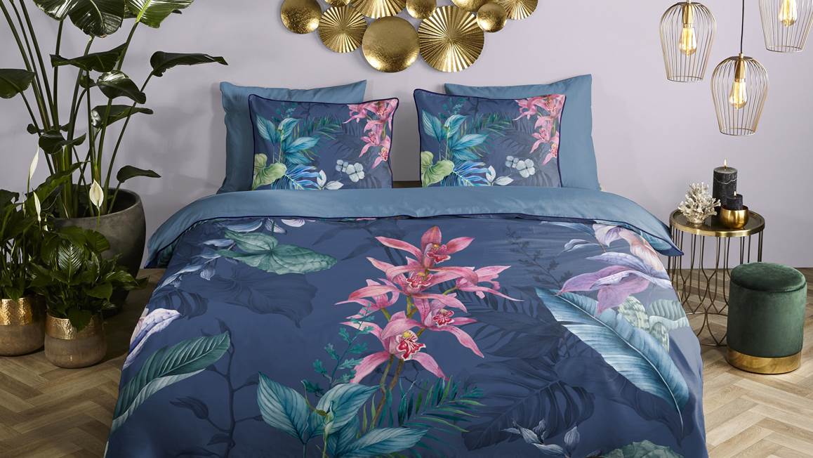 La housse de couette Mae de Descanso au coloris Bleu transforme votre coin nuit en une oasis de sérénité. Superposées les unes sur les autres, les fleurs d’orchidée et les feuilles tropicales donnent de la profondeur à la déco. Pour souligner son design chic et contemporain, cette parure de lit a un dos uni bleu. On aime la finition sophistiquée en pointe de bourdon !