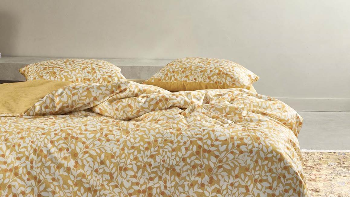 Le printemps se dessine avec la housse de couette Lenthe d’Essenza. Les feuilles et les baies en plusieurs nuances de jaune et blanc invitent la nature dans votre chambre pour un réveil dans la bonne humeur. Le même motif à effet aquarelle en camaïeu de jaunes pare le dos de cette parure de lit réversible (taies d’oreiller comprises).