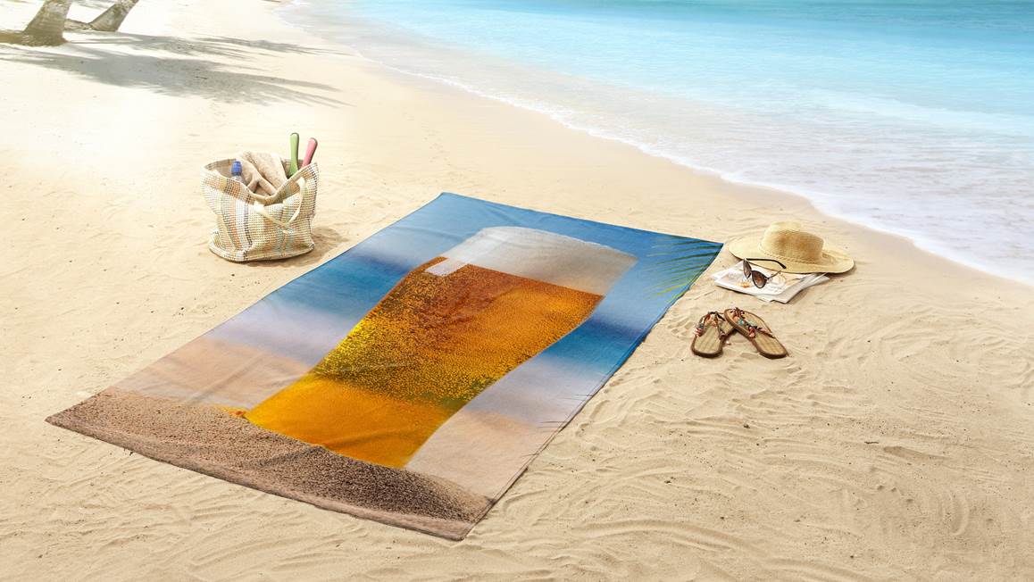 A déguster sans modération : la serviette de plage Beer de Good Morning ! Ce drap de plage XL de 100x180 cm se pare d’une photo ultra réaliste d’un verre de bière bien fraîche dans le sable de la plage. Son design double face offre le choix entre une face imprimée et une face unie blanche.