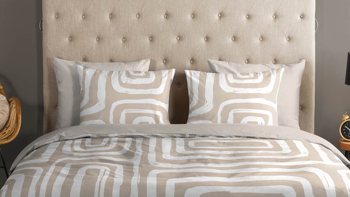 Avec son motif graphique aux teintes douces et naturelles, la housse de couette Madeleine de Good Morning se fond dans un intérieur de style Ethnique Chic. Les lignes épurées et les formes organiques de son imprimé à l’esprit tribal viennent adoucir et réchauffer la décoration. La parure de lit et ses taies d’oreiller se parent d’un dos uni beige.