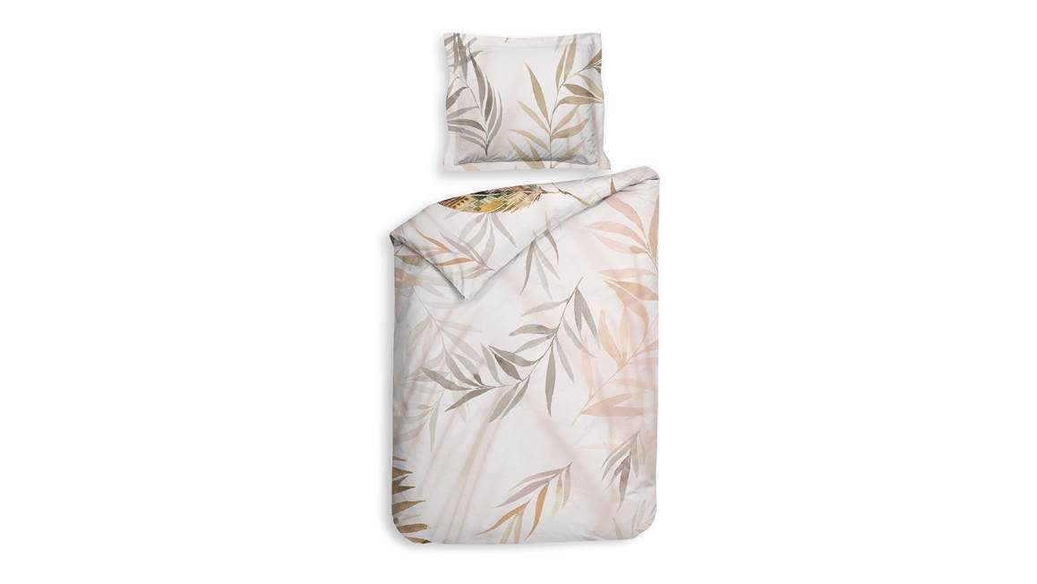 La housse de couette Rayna de Heckettlane attirera tous les regards dans votre chambre. Imprimée de feuilles composées de plumes et de motifs animaliers, elle est pile dans la tendance. Les couleurs douces et naturelles apportent confort et luminosité, créant une ambiance harmonieuse et sereine. La housse de couette et ses taies d’oreiller à volant plat sont rehaussées d’un motif à feuilles discret sur le côté verso.