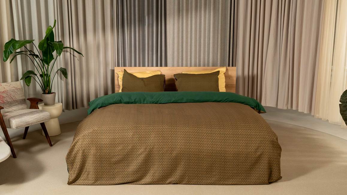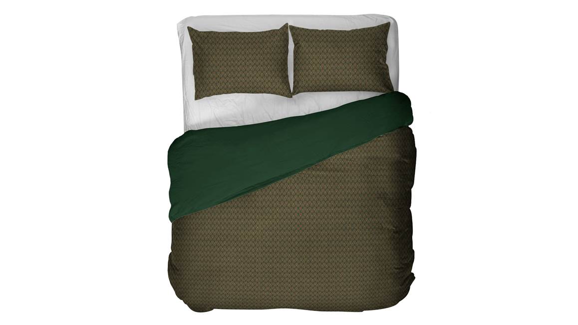 Ajoutez une touche ethnique chic à votre lit avec la housse de couette Aiko de Kayori au coloris Vert ! Son motif géométrique composé d’éventails dorés trouvera toute sa place dans une chambre de style Art Déco. Réversible, cette parure de lit japonisante (taies d’oreiller comprises) a un dos uni vert.