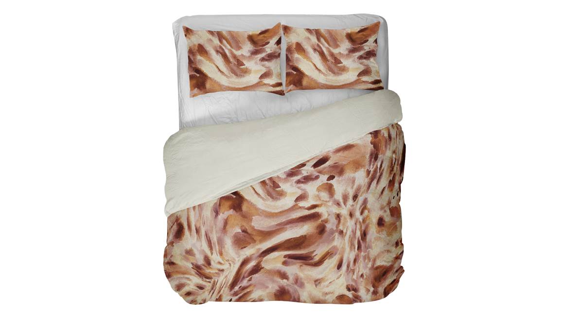 La housse de couette Futo de Kayori insuffle une ambiance chaleureuse et conviviale dans la chambre de style bohème. Les différentes nuances d’ocre se mélangent pour créer un motif graphique abstrait aux transitions fluides. La housse de couette et ses taies d’oreiller assorties sont finies d’un dos uni de couleur ivoire, vous permettant de relooker votre lit sans efforts.