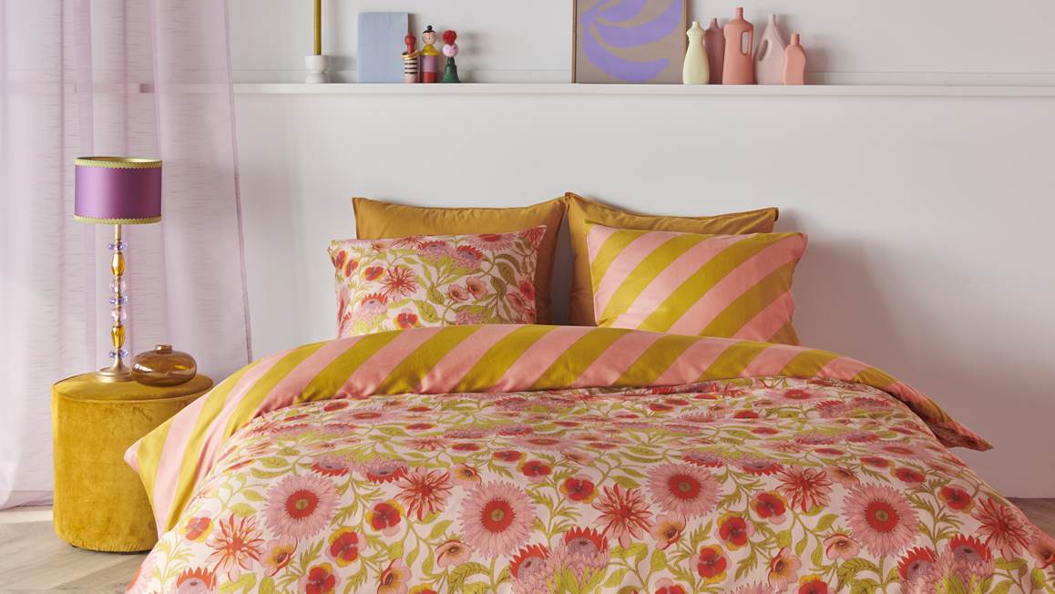 Apportez une touche Rétro Chic à votre espace de nuit avec la housse de couette Pretoria d’Oilily ! Associant différentes tonalités de rose, rouge et vert olive, son imprimé floral permet d’égayer votre intérieur en douceur. Côté dos, un motif à rayures diagonales en rose et vert permet de changer le look de votre lit en un clin d’œil. Les taies d’oreiller assorties reprennent le même design double face.