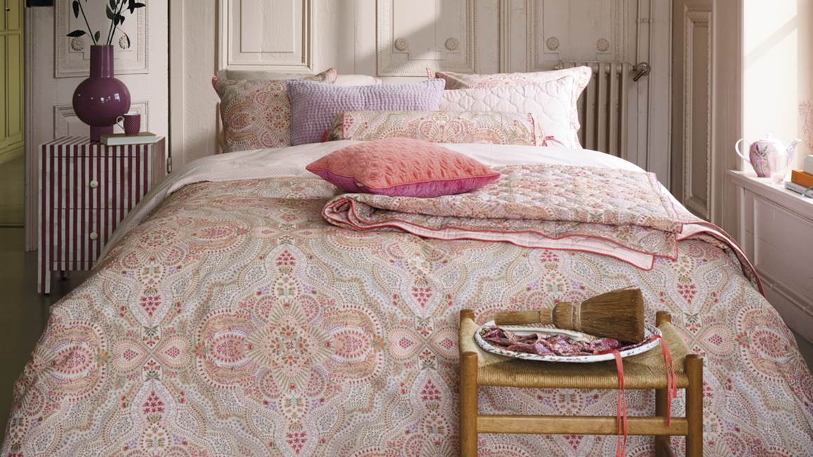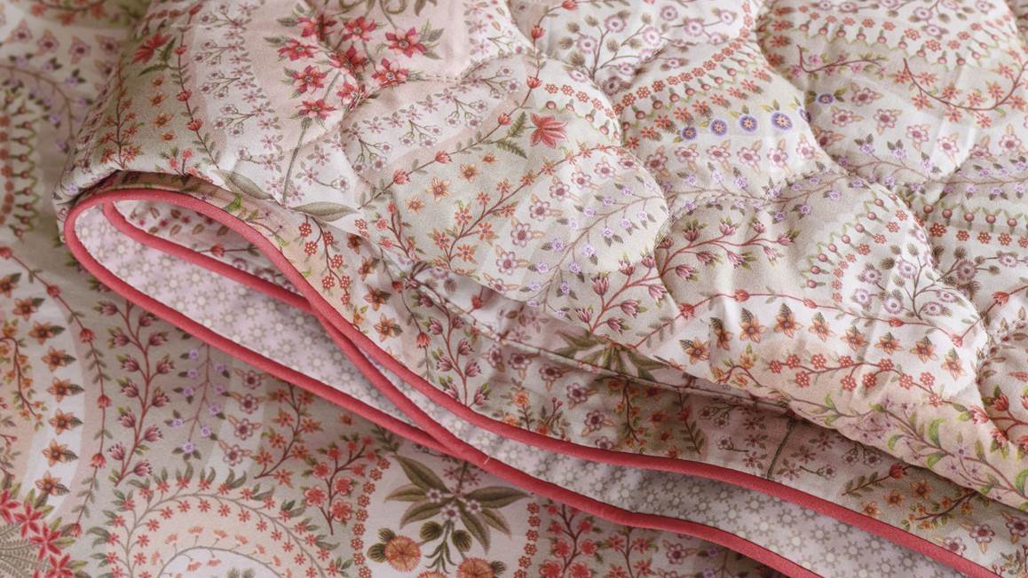 Le couvre-lit Moon Flower de Pip Studio se pare d’un motif ornemental empreint de poésie, composé de petites fleurs et de feuilles. Les doux tons pastel distillent une ambiance apaisante et romantique. Côté dos, un motif à étoiles raffiné permet de changer facilement le look de son lit. Jolie finition au niveau des bords avec un galon rose.