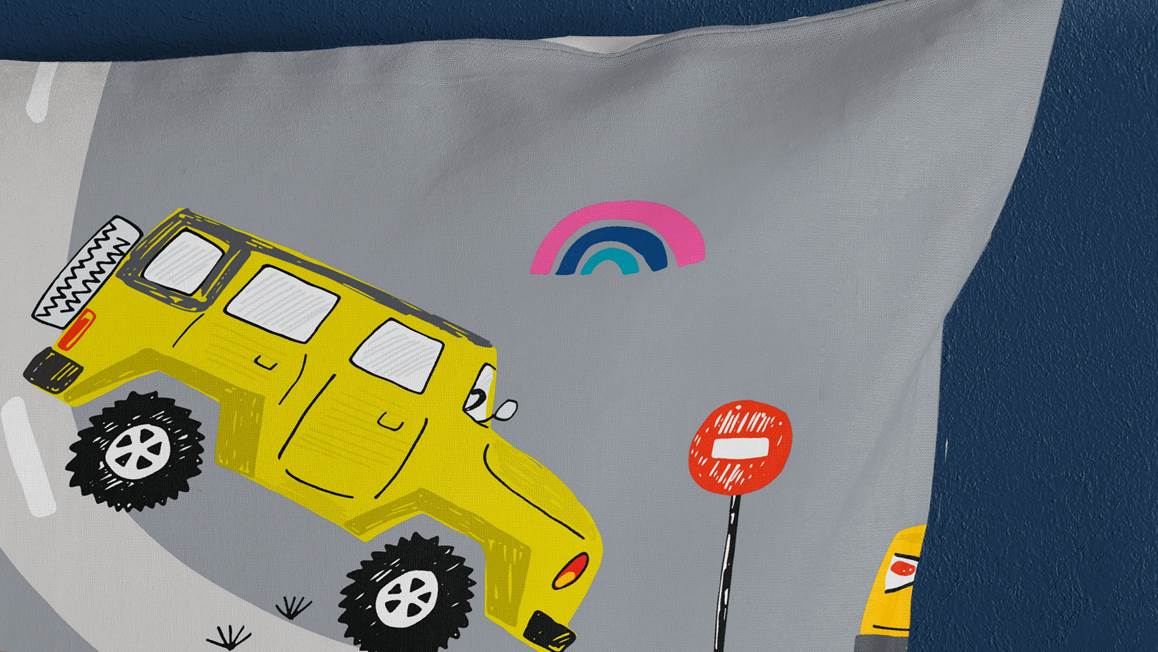 En route pour le Pays des Rêves avec la housse de couette Voyage de Pure ! Son imprimé ludique fera la joie des enfants qui aiment jouer avec les petites voitures. Le fond gris met en valeur les couleurs vives des voitures, des camions et des autobus. La housse de couette double face (taie d’oreiller comprise) se compose d’une face imprimée et d’une face unie.
