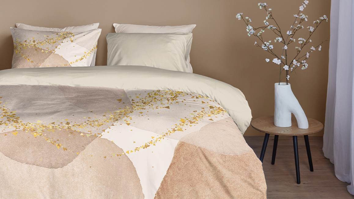 La housse de couette Cael de Snoozing incarne l’élégance et la modernité. Les couleurs douces et naturelles de son motif graphique à l’esprit Japandi instaurent une atmosphère apaisante et harmonieuse. Elle se marient à merveille avec les petits triangles dorés qui viennent ajouter une touche Glamour à cette parure de lit double face (dos uni). Vendue avec les taies d’oreiller assorties.