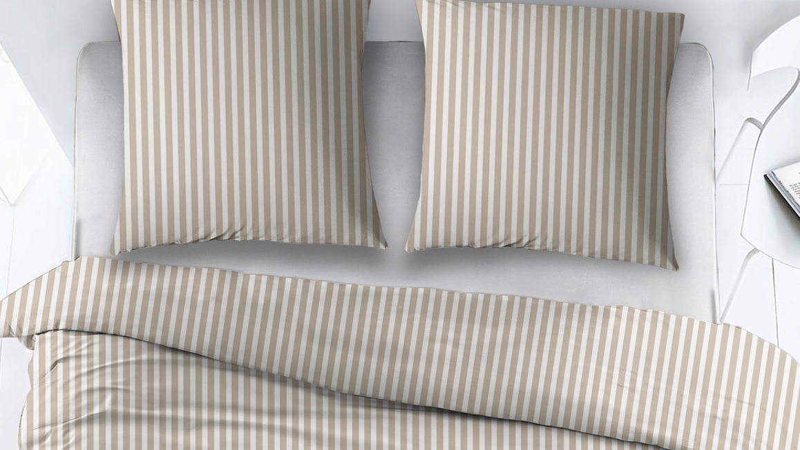 La housse de couette Carine de Snoozing apporte du relief à la déco de la chambre. Ses fines rayures en beige et blanc créent instantanément un rendu élégant et une ambiance paisible et sereine. Les taies d’oreiller assorties (comprises dans la parure de lit) ont un format carré de 65x65 cm.