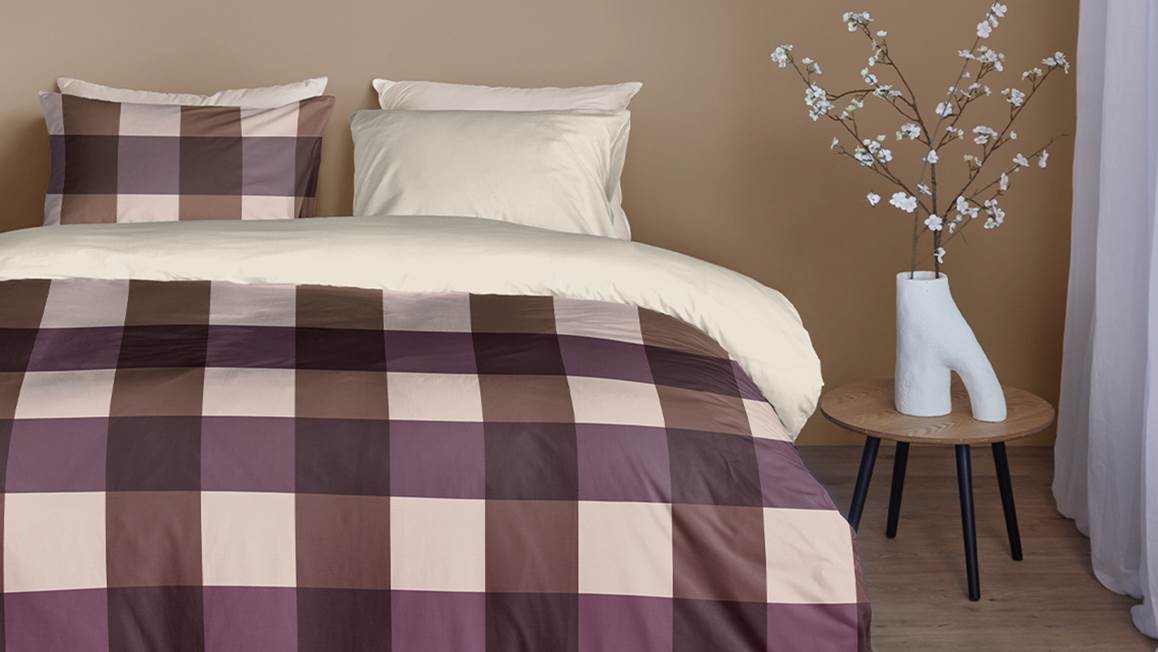 La housse de couette Herald de Snoozing instaure un univers apaisant et cosy dans la chambre. Les teintes terreuses de son motif à carreaux lui confèrent un aspect organique et naturel. Pour souligner son côté chic et tendance, la parure de lit et les taies d’oreiller assorties sont rehaussées d’un dos uni.