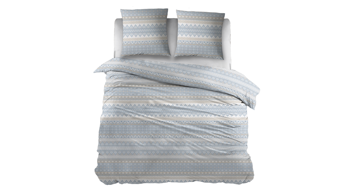 Ornée d’un motif géométrique en bleu ciel et gris, la housse de couette Kristel de Snoozing respire la fraîcheur et la sérénité. Cette jolie parure de lit à l’esprit scandinave se compose de la housse de couette et ses taies d’oreiller assorties (au format carré 65x65 cm).