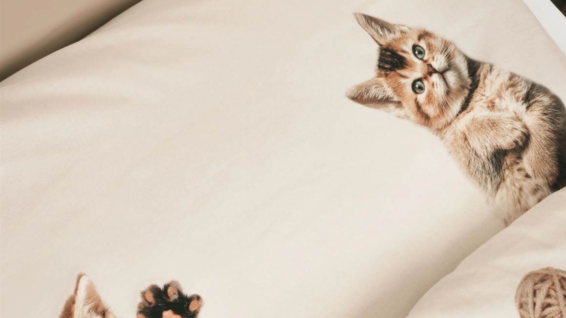 La housse de couette Kitten Friends de SNURK fera craquer les amis des chats. Les petits chatons tigrés se sont installés confortablement sur l’oreiller pour vous accompagner au Pays des Rêves. La housse de couette se pare d’un motif à pois original, composé de boules de laine. Un atout déco plein de tendresse !