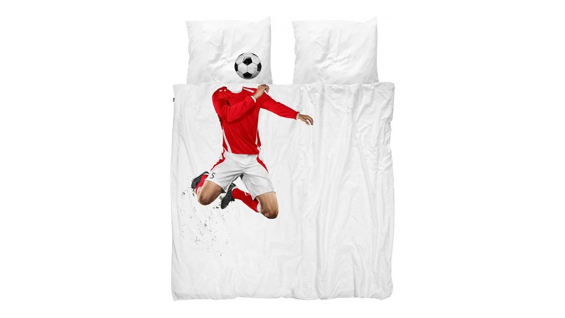 Sous la housse de couette Soccer Champ de la marque SNURK, votre petit champion de football pourra marquer le but de ses rêves ! Cette parure de lit blanche est imprimée d'un joueur de football en maillot rouge. Evidemment, la taie d'oreiller avec ballon de foot est livrée avec la housse de couette !