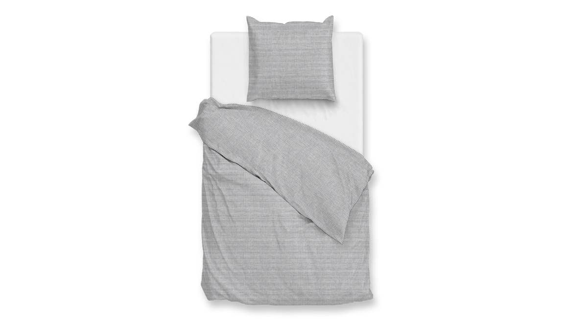 La housse de couette Striscia di Lino de Zohome apporte une touche de légèreté à la chambre. Les fines rayures horizontales se déclinent dans différents tons de gris pour réveiller la déco avec élégance. Les taies d’oreiller assorties (format rectangulaire de 60x70 cm) reprennent le même motif rayé.